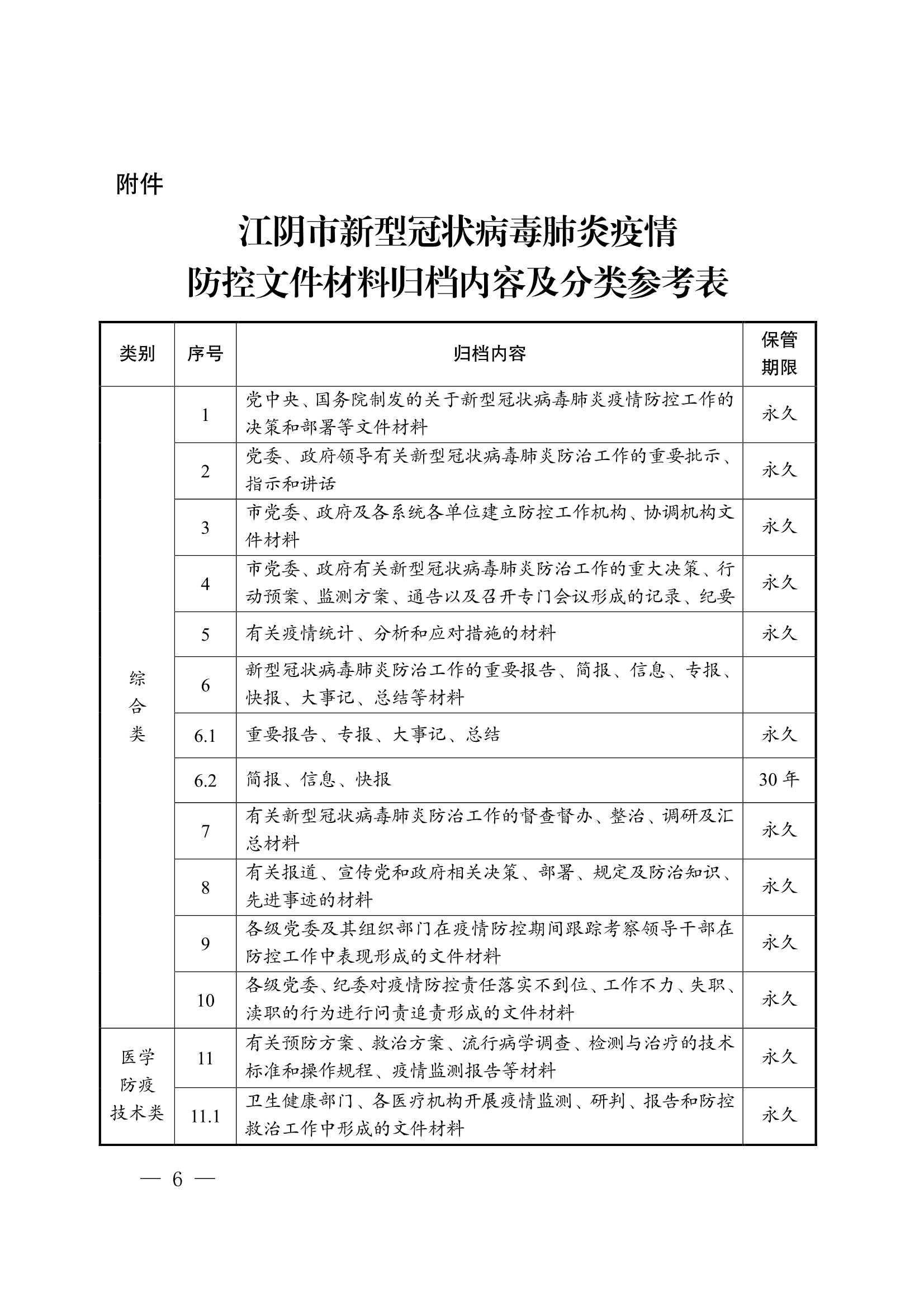 附件:江阴市新型冠状病毒肺炎疫情防控文件材料归档内容及分类参考表