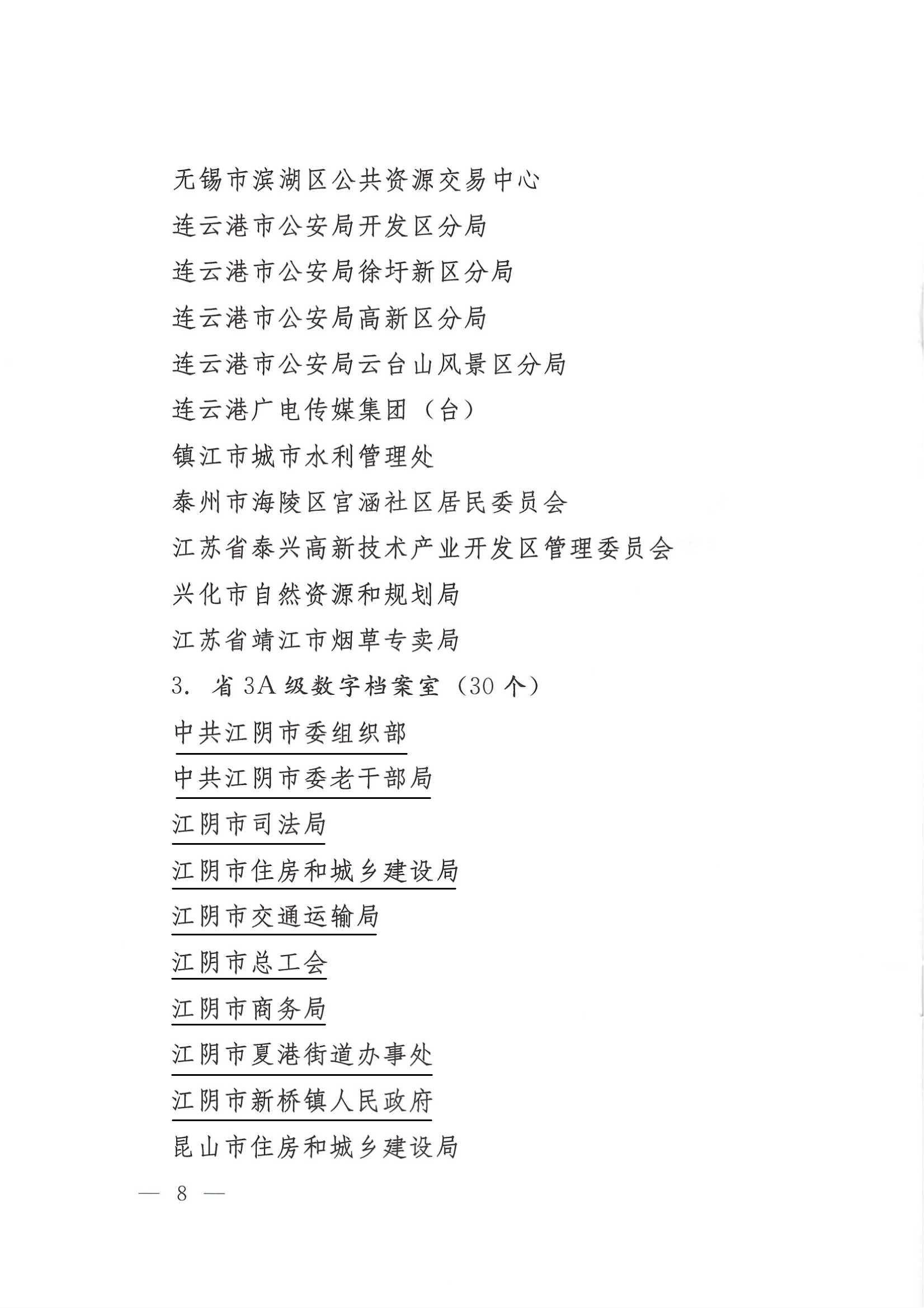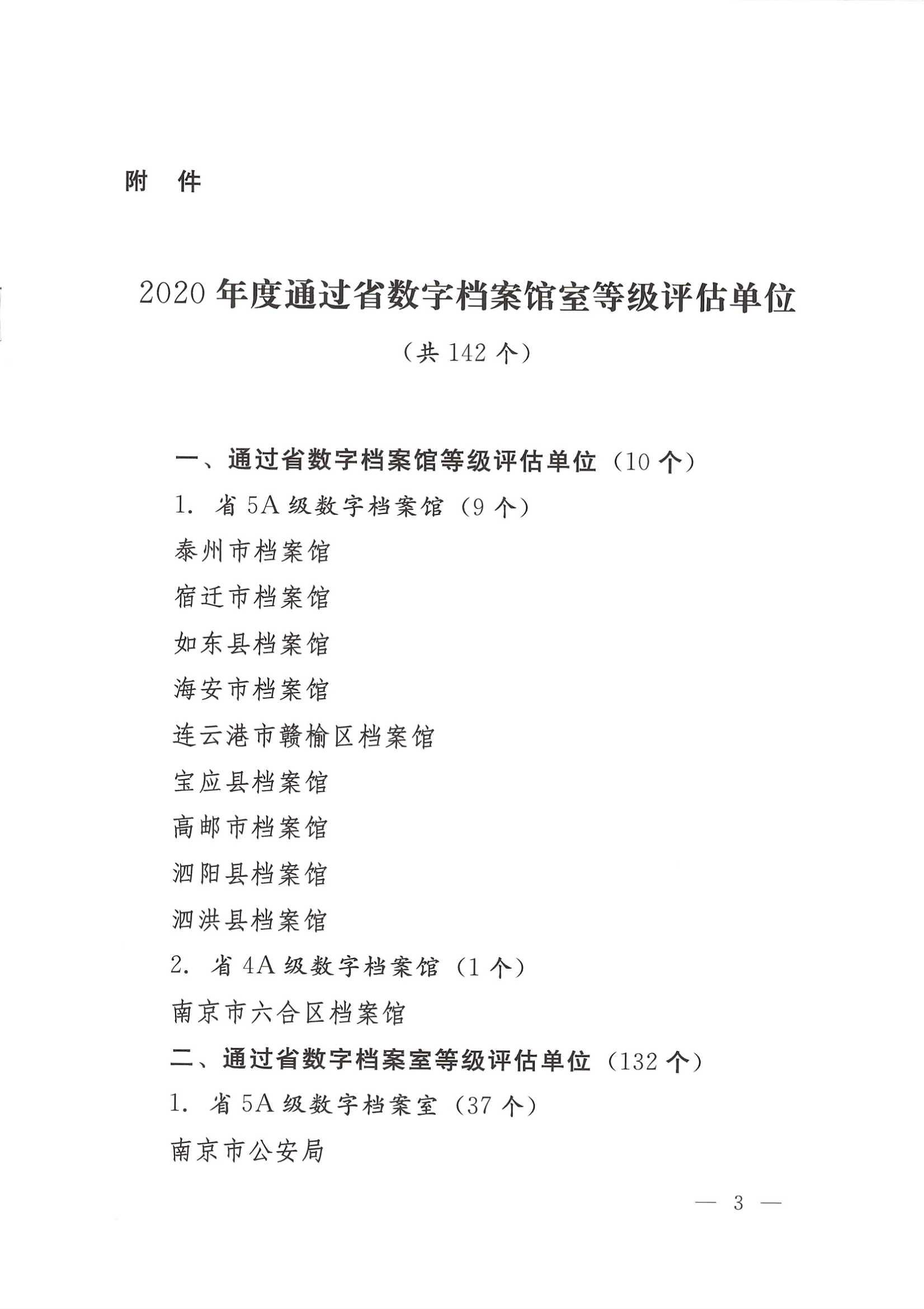 2020年是极不平凡的一年,全省档案部门以习近平新时代中国特色社会主义思想为指导,认真贯彻党的十九大和十九届二中、三中、四中、五中全会精神,深入落实习近平总书记视察江苏重要讲话指示精神,紧紧围绕年初确定的工作思路和目标任务,全力推动全省档案事业高质量发展,档案信息化建设取得了显著成绩。依据《江苏省数字档案馆等级评估办法》《江苏省数字档案室等级评估办法》,经自愿申报、专家组现场评估,泰州市档案馆等142个单位通过省数字档案馆室等级评估,现予通报。