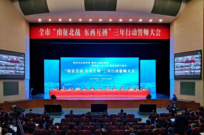 2021年2月26日,江阴召开“南征北战、东西互搏”三年行动誓师大会,全面吹响“南征北战、东西互搏”冲锋号。“南征”推动“霞客湾科学城、绮山湖科创谷”建设;“北战”打响港口资源整合战、城区品质突围战、长江生态保护战;“东西互搏”协同推进“六个高质量”发展,升级改造工业园区。