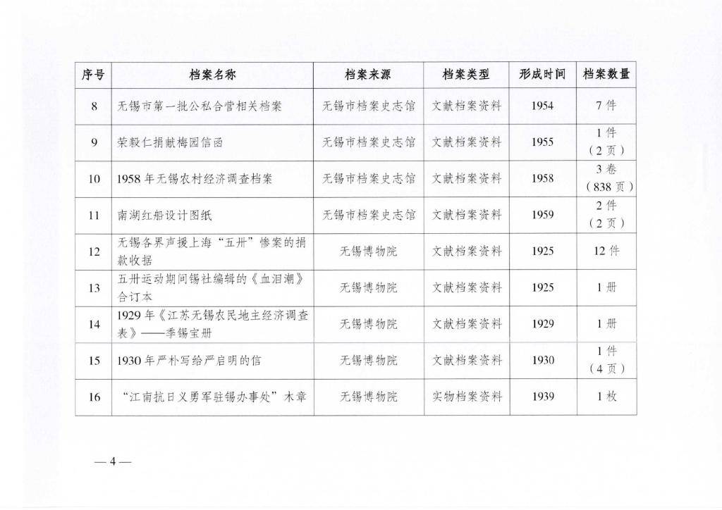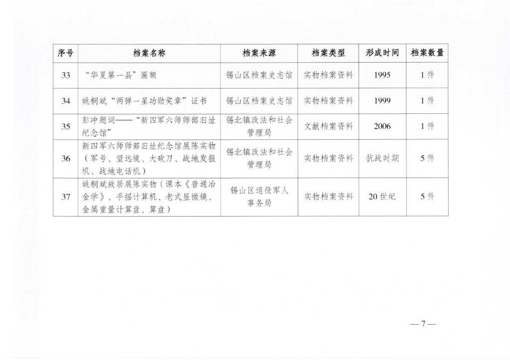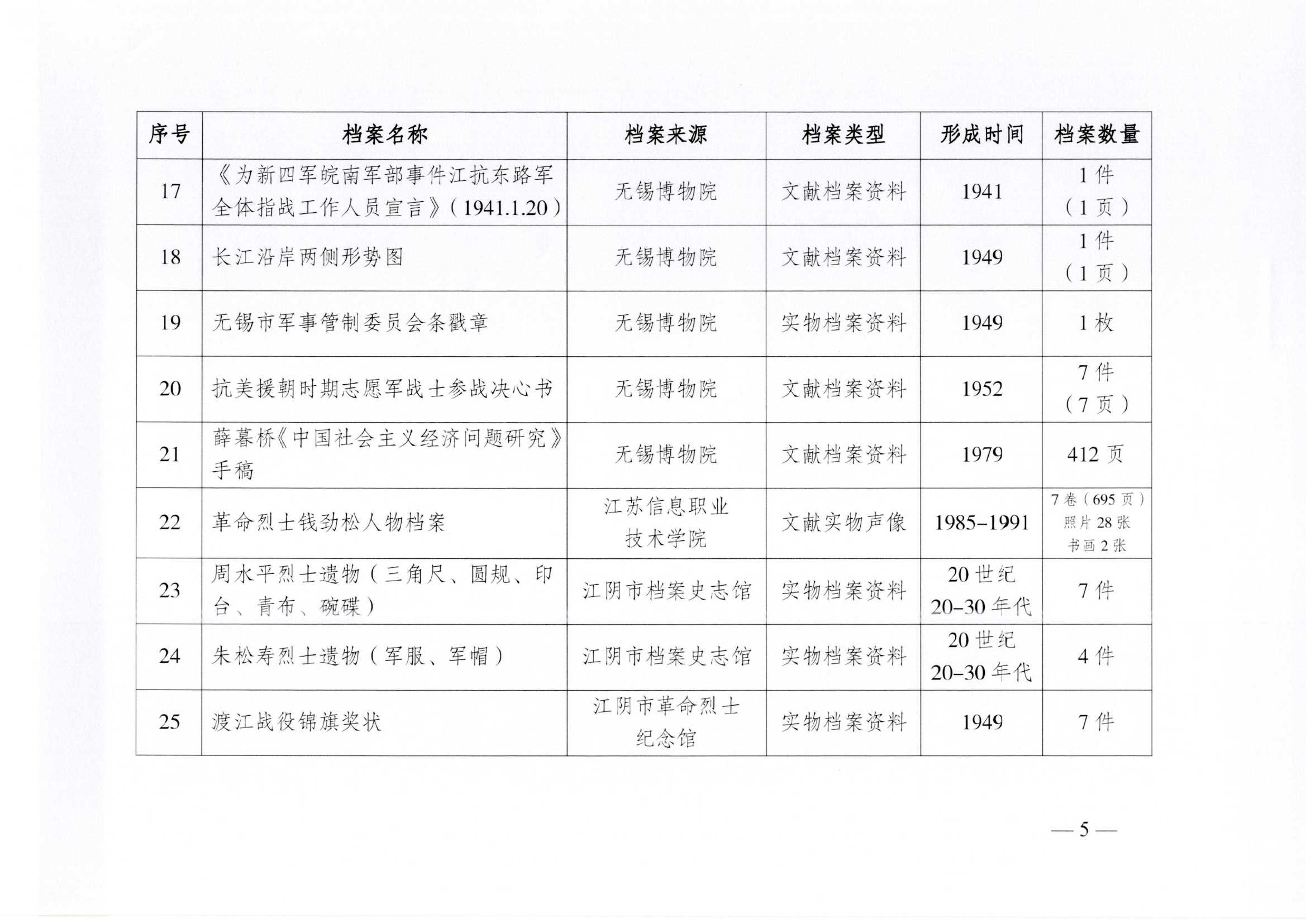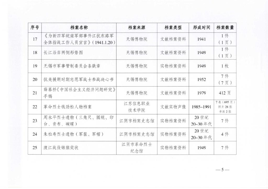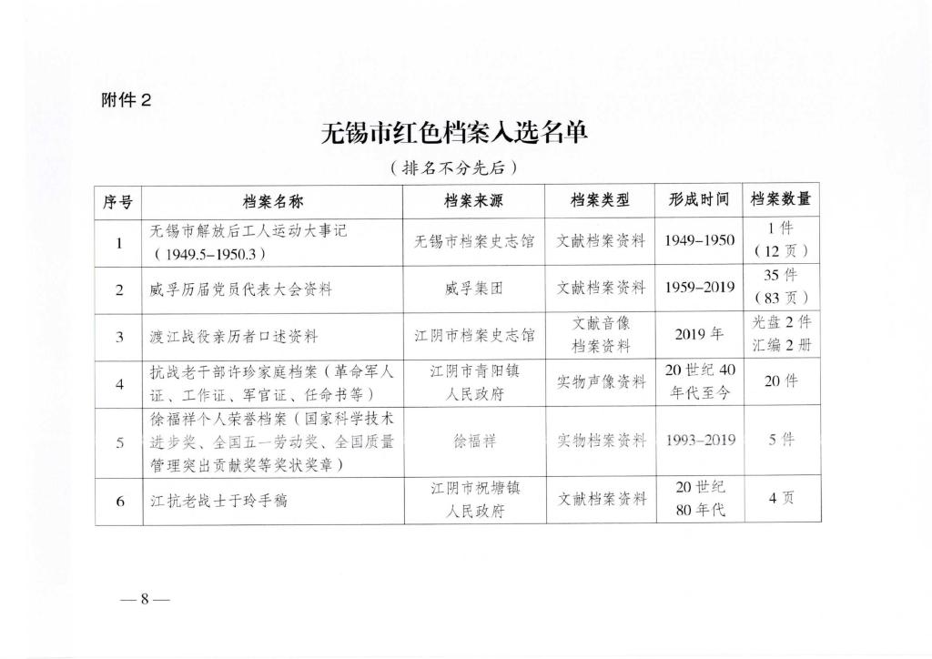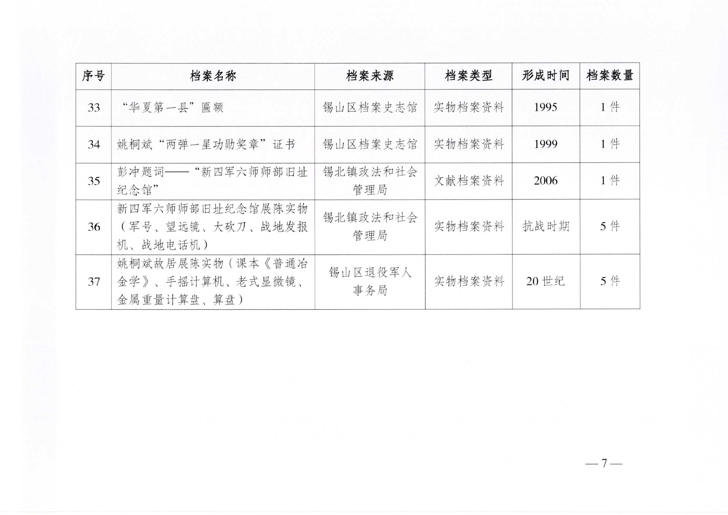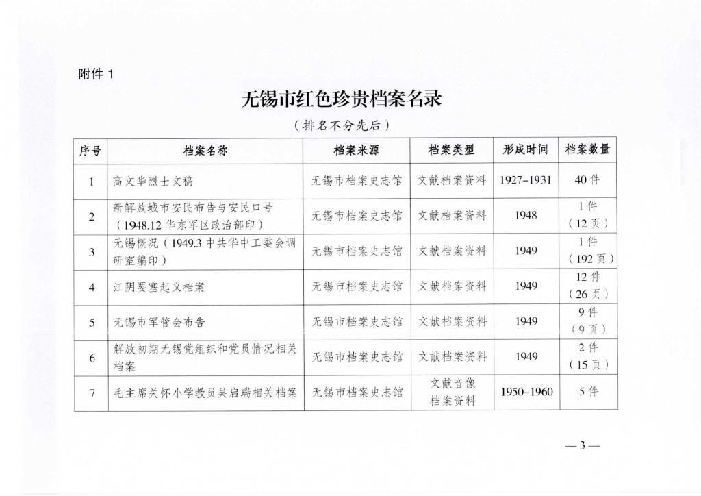 关于公布《无锡市红色珍贵档案名录》和《无锡市红色档案入选名单》的通知