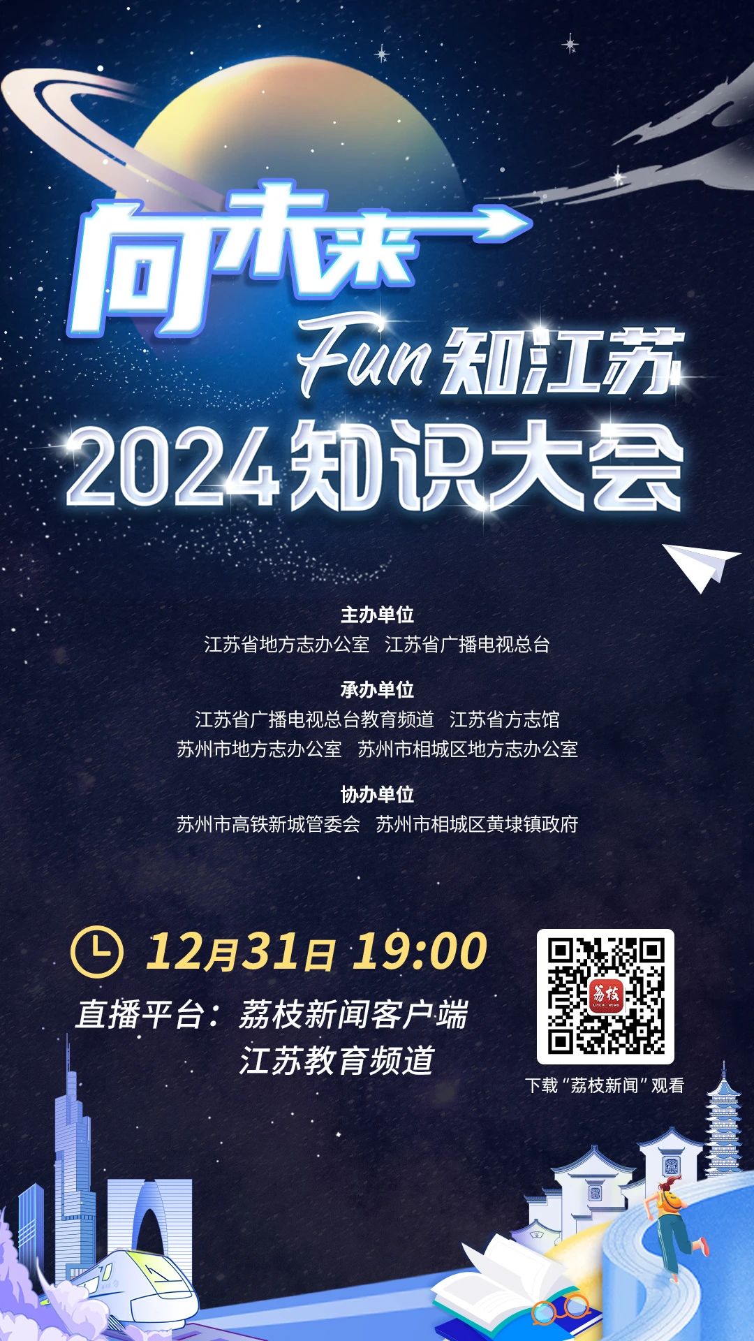 由江苏省地方志办公室、江苏省广播电视总台主办,江苏省广播电视总台教育频道、江苏省方志馆、苏州市地方志办公室、苏州市相城区地方志办公室承办的向未来——“Fun知江苏”2024知识大会,融合主题性、知识性、话题性于一体,集结知识的力量打造跨年文化盛宴。