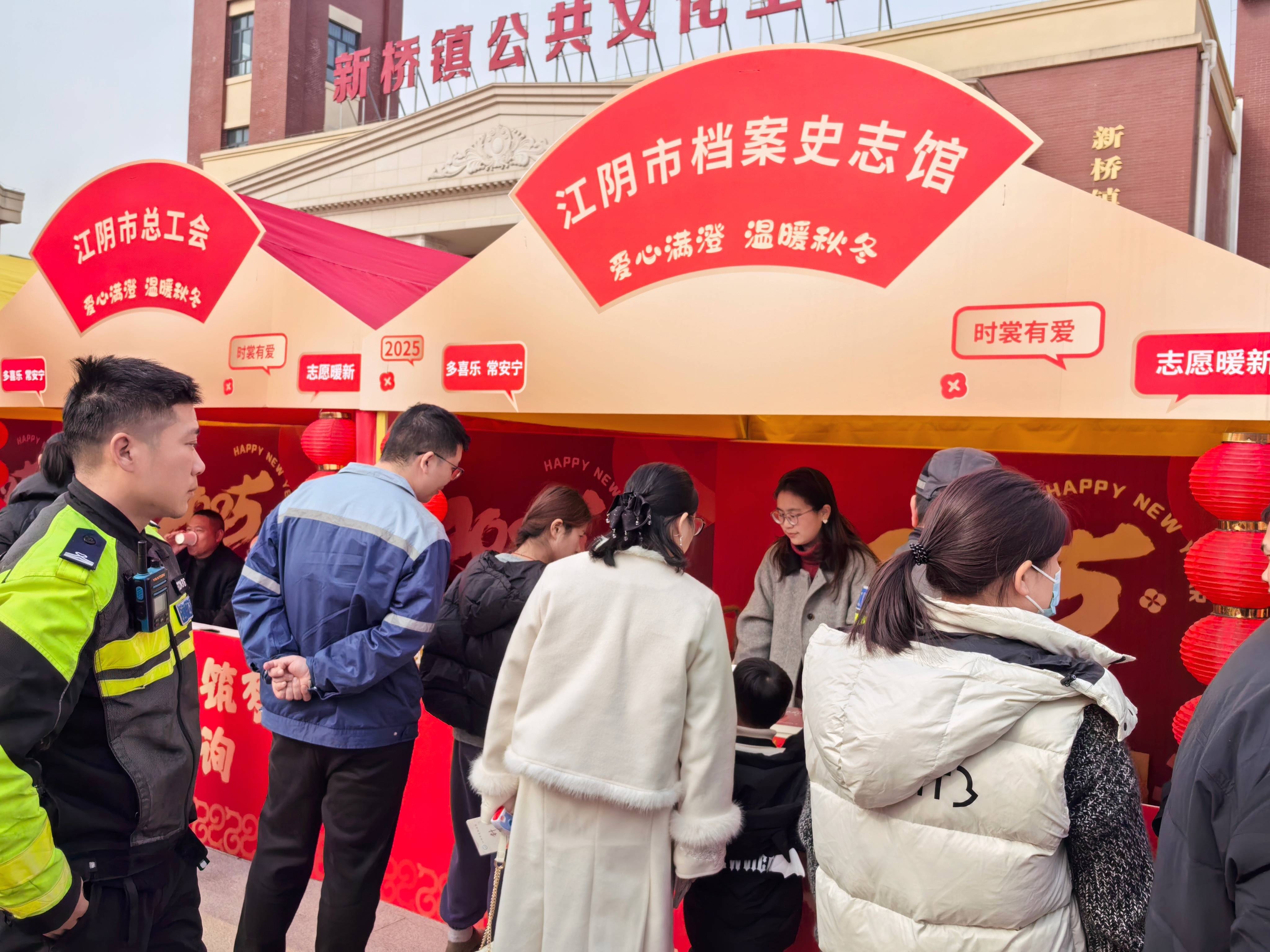 1月14日下午,江阴市2025年文化科技卫生“三下乡”集中活动在新桥镇新时代文明实践所广场举行。我馆团队着眼档案服务与地情文化宣传,耐心解答有关档案查阅利用问题,并以“江阴纪事”公众号为平台,向来往市民积极展示《沿着地铁看江阴》《福建也有个江阴,和咱们江阴有什么关系吗?》等文章、短视频,以馆藏精品档案为载体,凸显历史底蕴与人文风情,镌刻时代变迁与发展足迹。活动现场累计向群众分发《江阴年鉴(2024)》《“江阴•忆”—2023江阴纪事推文选编》《暨阳档案》《中共江阴历史(1949-1978)》(第二卷)等档案史志书籍近200册。